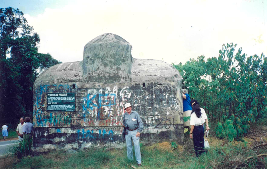 The following photograph of the pillbox was taken by Merv Blyth, with Nemo Dorph in the frame, on a trip commemorating the 50th Anniversary visit to Singapore. The second photograph is reprinted in an article marking the 90th anniversary of the Malay Regiment’s founding, published by author Stuart Lloyd in a history of a little-known chapter of World War II.